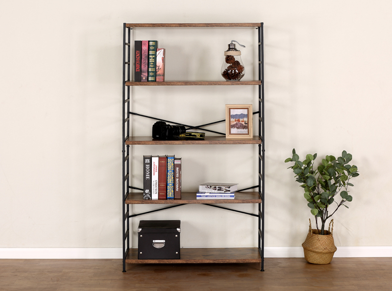 【MULTIFUNCTIONAL BOOKSHELF】The 4 tier industrial bookshelf with open storage shelves design which provides perfect platforms for displaying your decorations. Like family photos, novels, speakers or plants. Clean design meets rustic industrial style in this open bookcase, ideal for your bedroom, living room and office. 5 particle wood boards provided, in fact, there are 5 layers of space for things.